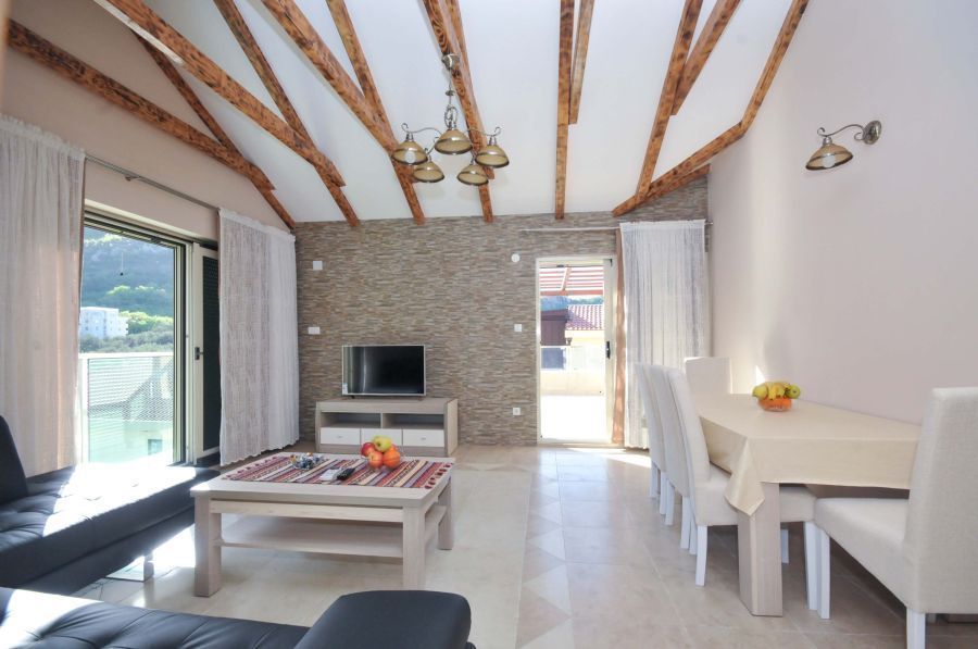 Our Three-bedroom Apartment is spacious and furnished in rustical style .It is suitable for larger families or groups. Consists of a living room with a sofa bed for 1 people and a kitchen. It has 3 separate bedrooms.It has 1 bathroom and 2 terraces .Maximum capacity 6 people.