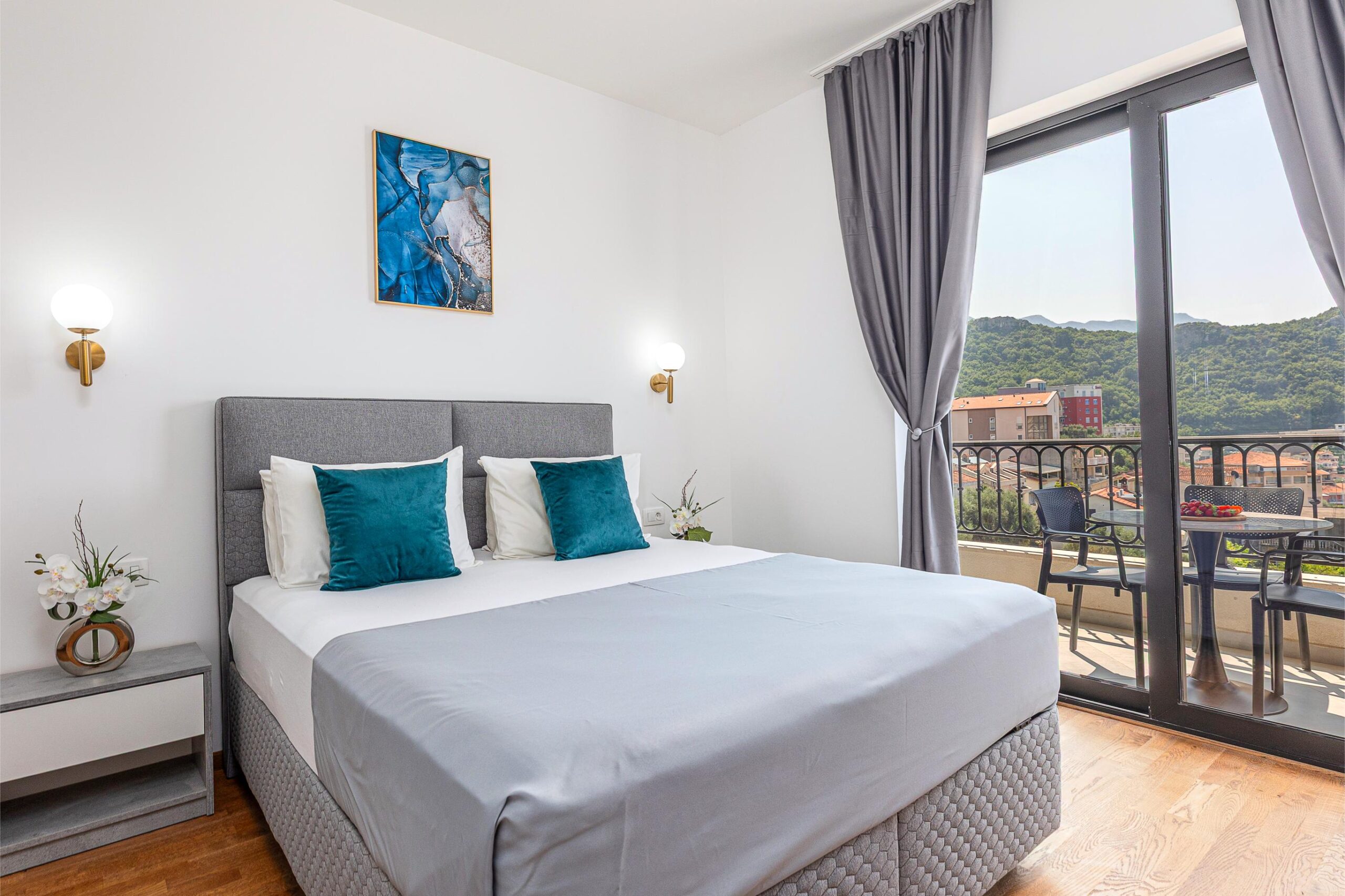 Modern and spacious apartment suitable for larger families or groups. Consists of a living room with a sofa bed for 2 people and a kitchen. It has 2 separate bedrooms.In one bedroom there is a king-size bed for 2 people, and in the other room also a king-size bed for 2 people.It has 2 bathrooms and 2 terraces with sea or pool views. Maximum capacity 6 people.